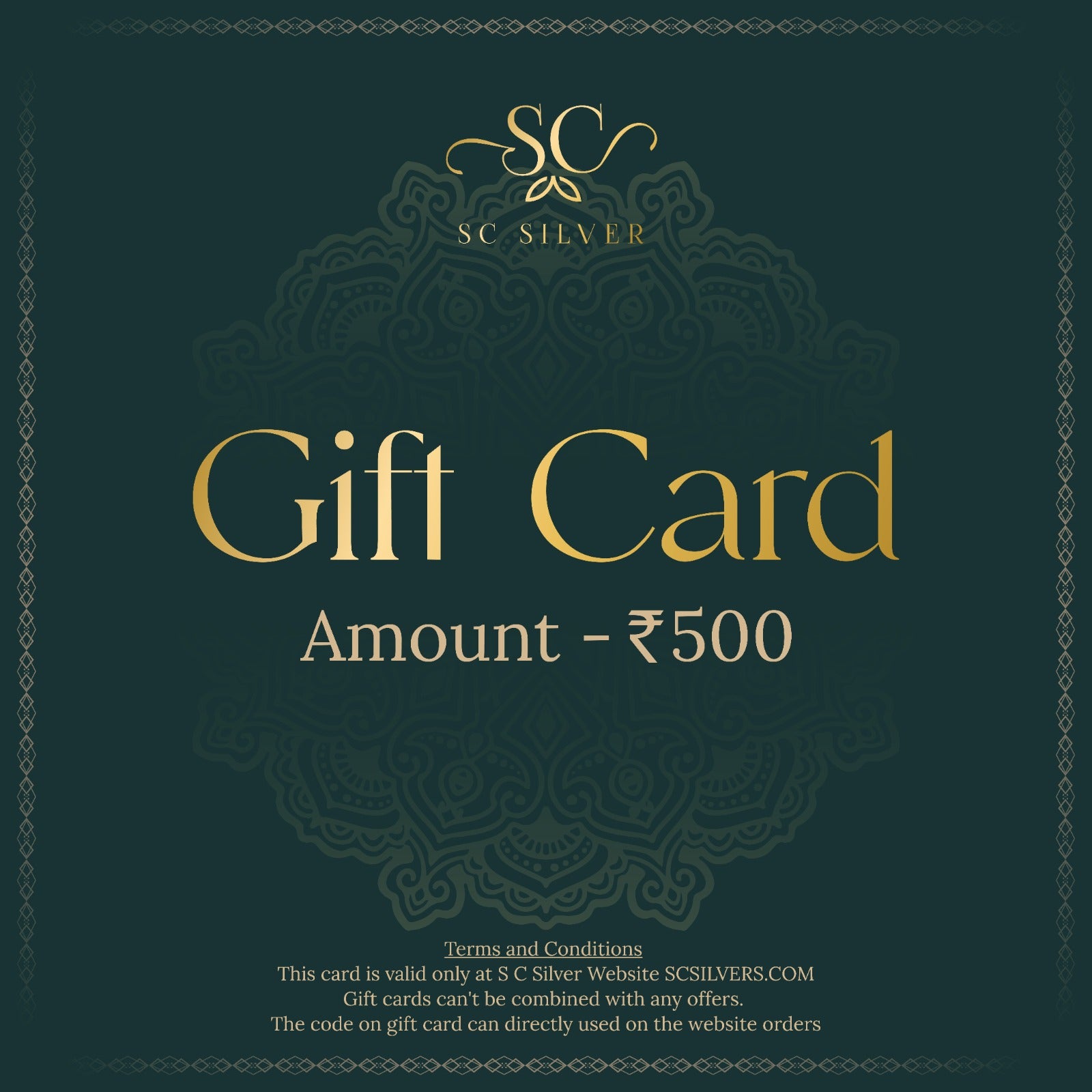 - This gift card is valid only at S C Silver Website: SCSILVERS.COM.